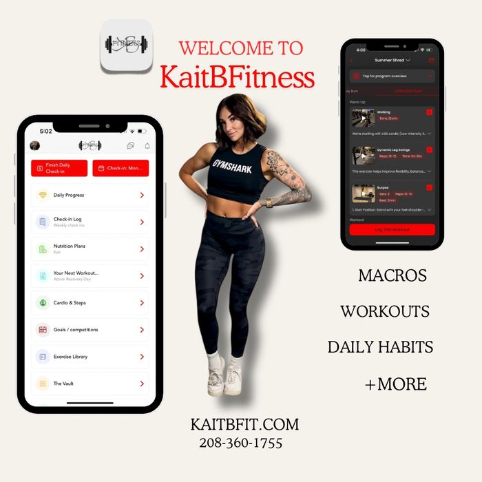 At KaitB Fitness, I’ve got a program for everyone, starting at just $30 a month! What I love most about this approach is that you get one-on-one coaching, but it’s still completely in your hands. You control the pace and the process while I guide you with personalized support and keep you on track. Whether you’re new to fitness or looking